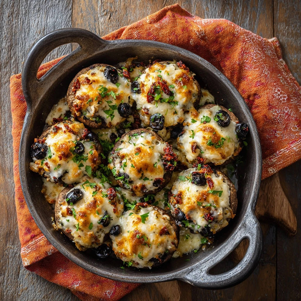 Top each stuffed mushroom with the remaining 1/4 cup shredded mozzarella cheese and the remaining 2 tablespoons of chopped black olives. This creates a beautiful, bubbly, and extra flavorful cheesy crown.