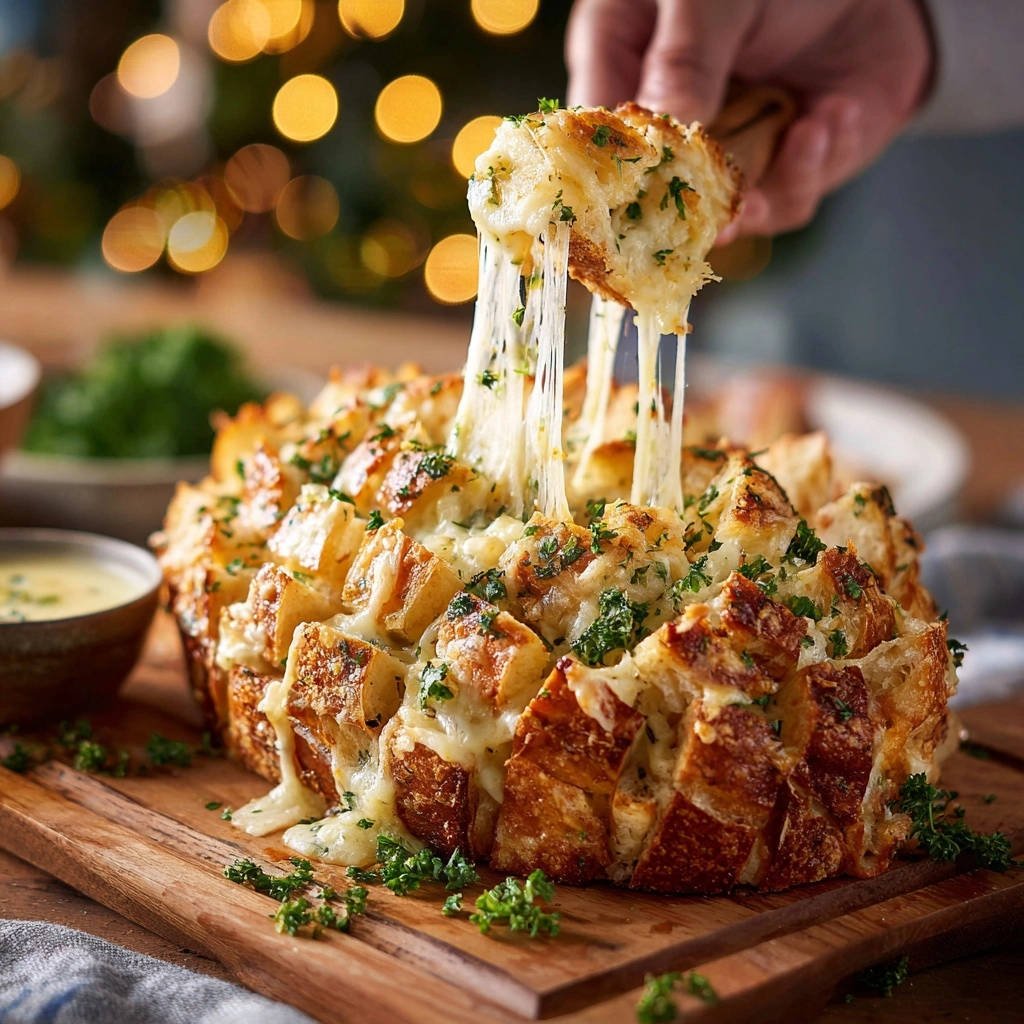 - Serve immediately: Transfer the Cheesy Garlic Pull-Apart Bread to a serving board. Pull apart the cheesy sections and watch that incredible gooey stretch! Serve hot and enjoy every single moist, garlicky, cheesy bite.