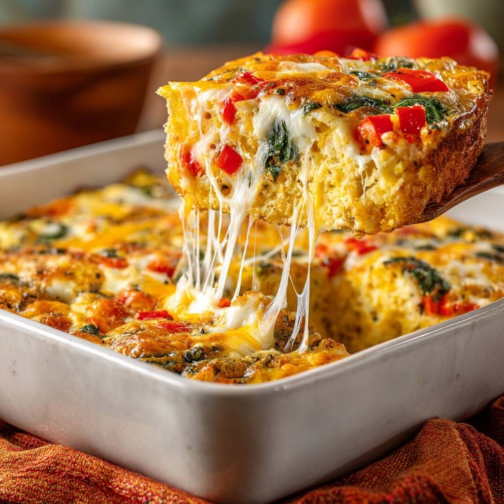 This bake shines because it blends spinach’s earthy bite with red pepper’s sweet crunch, all backed by hearty cornmeal and sharp cheddar melt. However, most versions fail from excess veggie moisture that drowns the custard base.