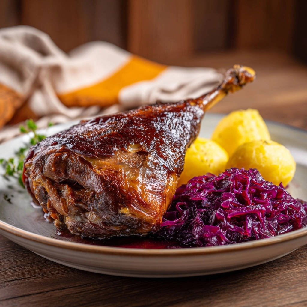 - Assemble and Serve: Plate the perfectly tender and crispy duck leg alongside a generous portion of the braised red cabbage and the boiled potatoes. Garnish with a fresh sprig of thyme. Enjoy your guaranteed success!