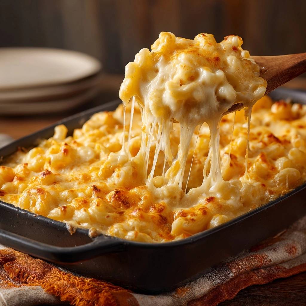 Serve hot with that perfect stretch. Your creamiest baked mac and cheese shines.