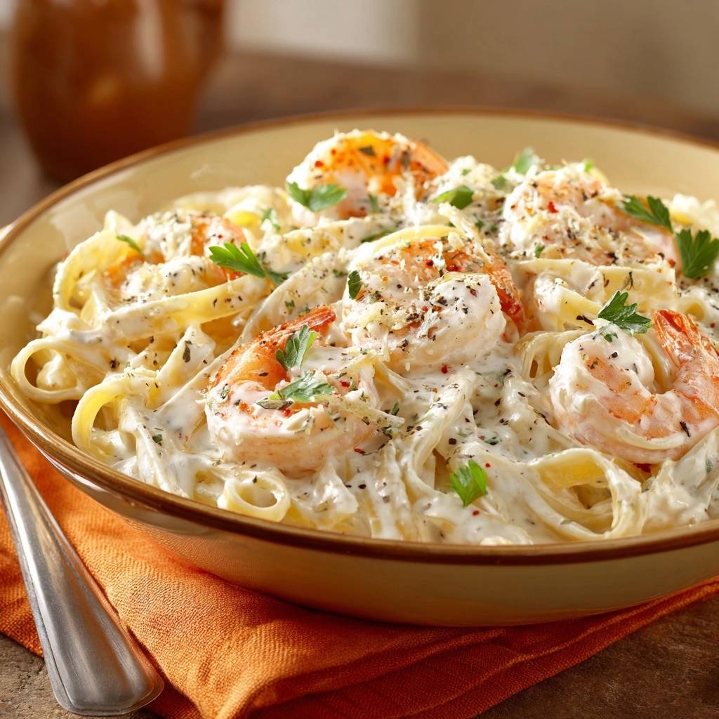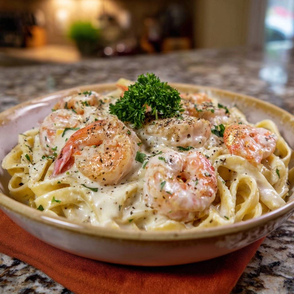 Science of Juicy Shrimp in Creamy Fettuccine