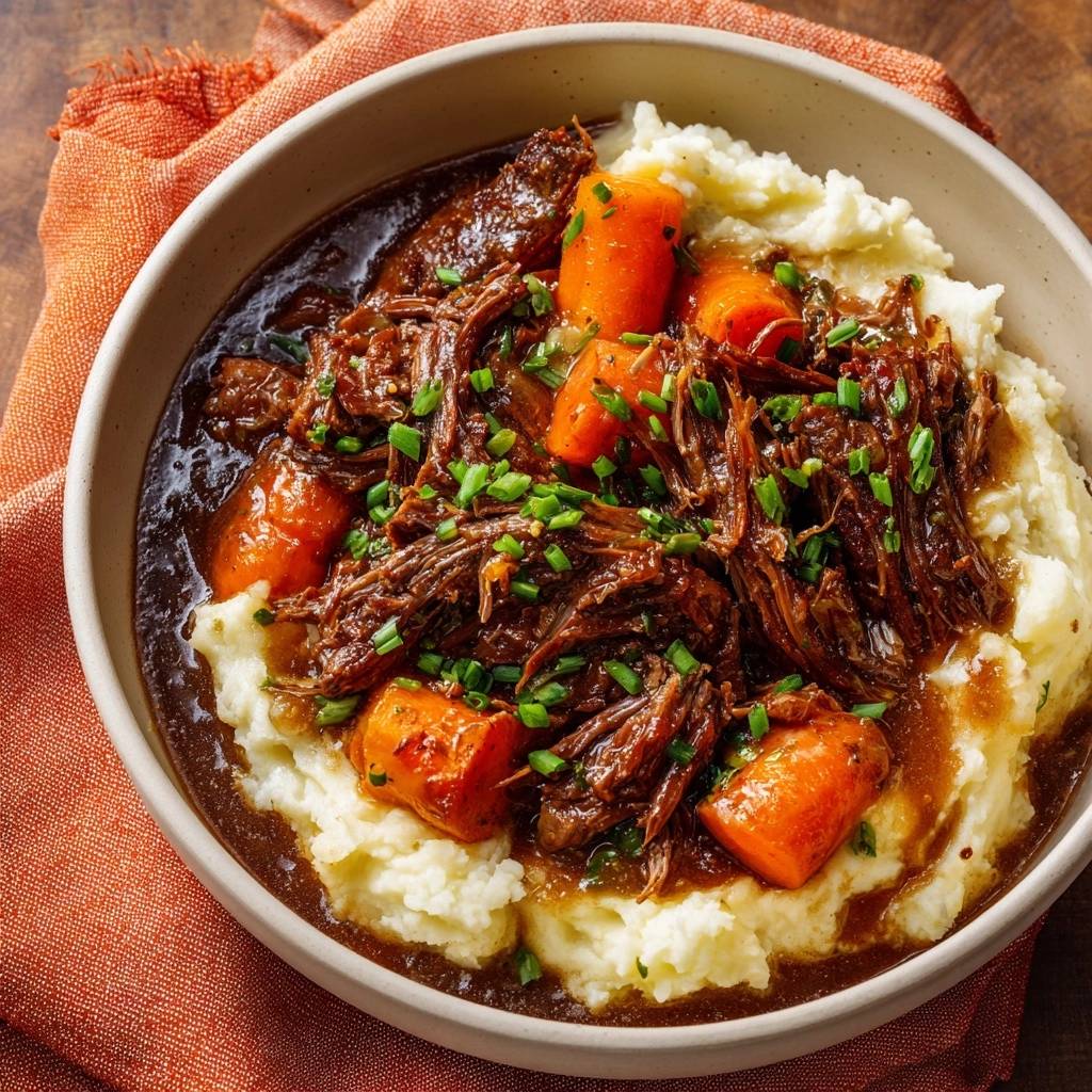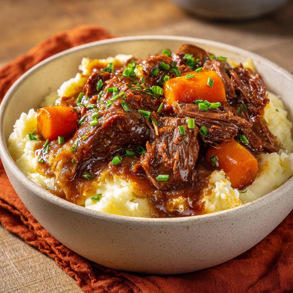 Tired of chewy pot roast that chews like old boots? This slow-cooker recipe delivers shreddable beef every single time. You get juicy chunks that melt in your mouth, paired with sweet carrots and that rich gravy soaking into creamy mash. Dinner’s ready without the babysitting.