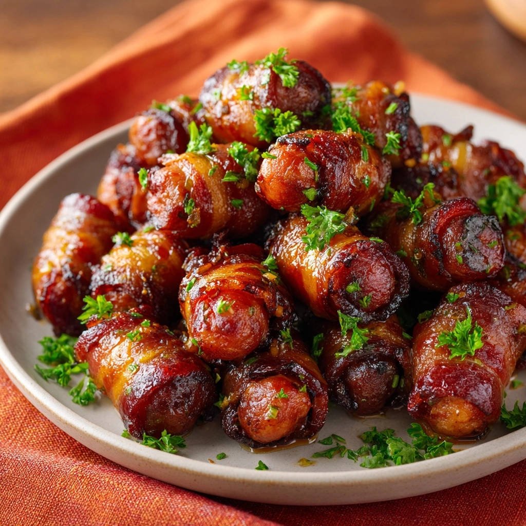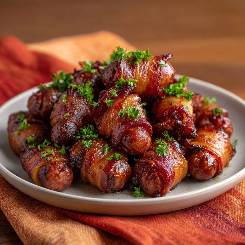 Fresh chopped parsley isn’t just for looks; it adds a burst of vibrant color and a fresh, herbaceous note that beautifully balances the sweetness and savory richness of the Glazed Bacon-Wrapped Cocktail Sausages.