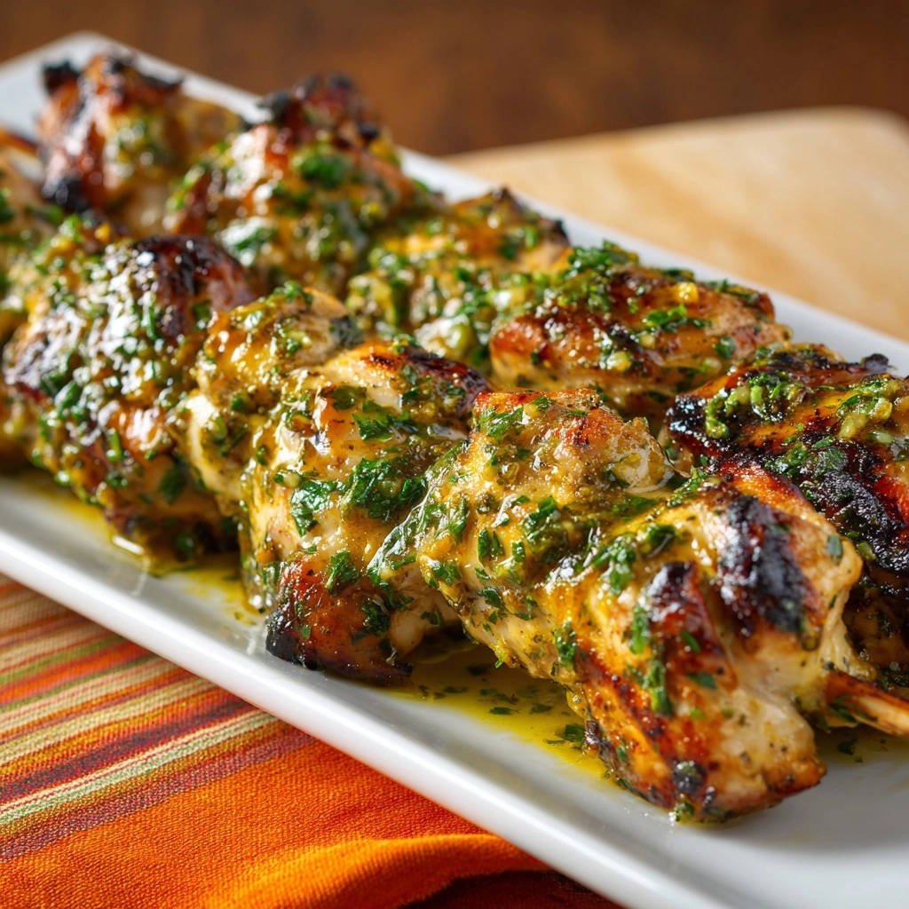 Finally, generously spoon the fresh herb sauce over the hot, rested chicken skewers. The warmth of the chicken will slightly warm the sauce, releasing its aromatic oils. Serve immediately and savor your perfectly juicy, flavorful chicken!