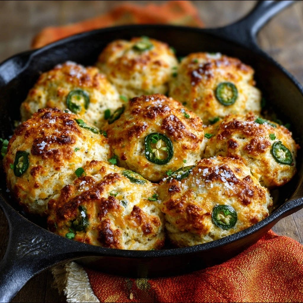 Fresh jalapeños, finely diced and added directly to the dough, infuse the biscuits with a bright, spicy warmth. Sliced rounds are reserved for a decorative, extra spicy topping.