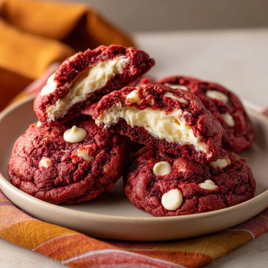 Try gluten-free 1:1 flour blend; it works but chill longer. These keep red velvet cheesecake stuffed cookies irresistible.